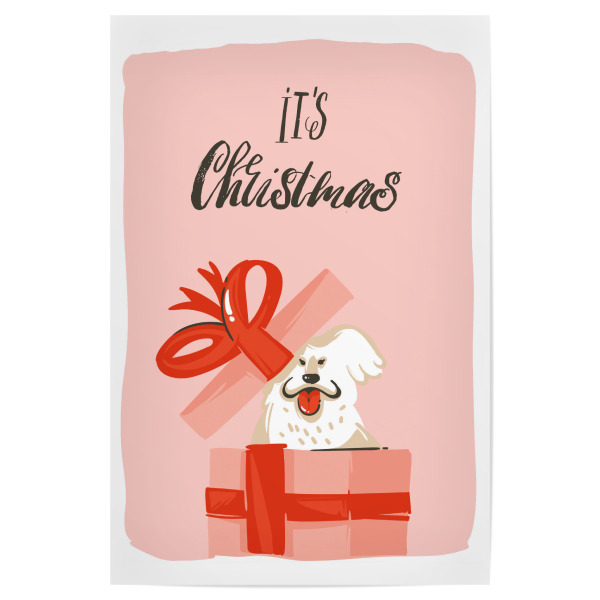 Poster "Christmas dog present" artboxONE - Typografie,Tiere,Weihnachten - Weihnachten,Geschenk,Hund,Bunt,Illustration
