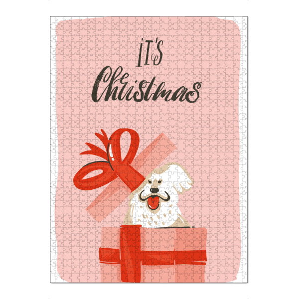 artboxONE Puzzle "Christmas dog present" artboxONE - Typografie,Tiere,Weihnachten - Weihnachten,Geschenk,Hund,Bunt,Illustration