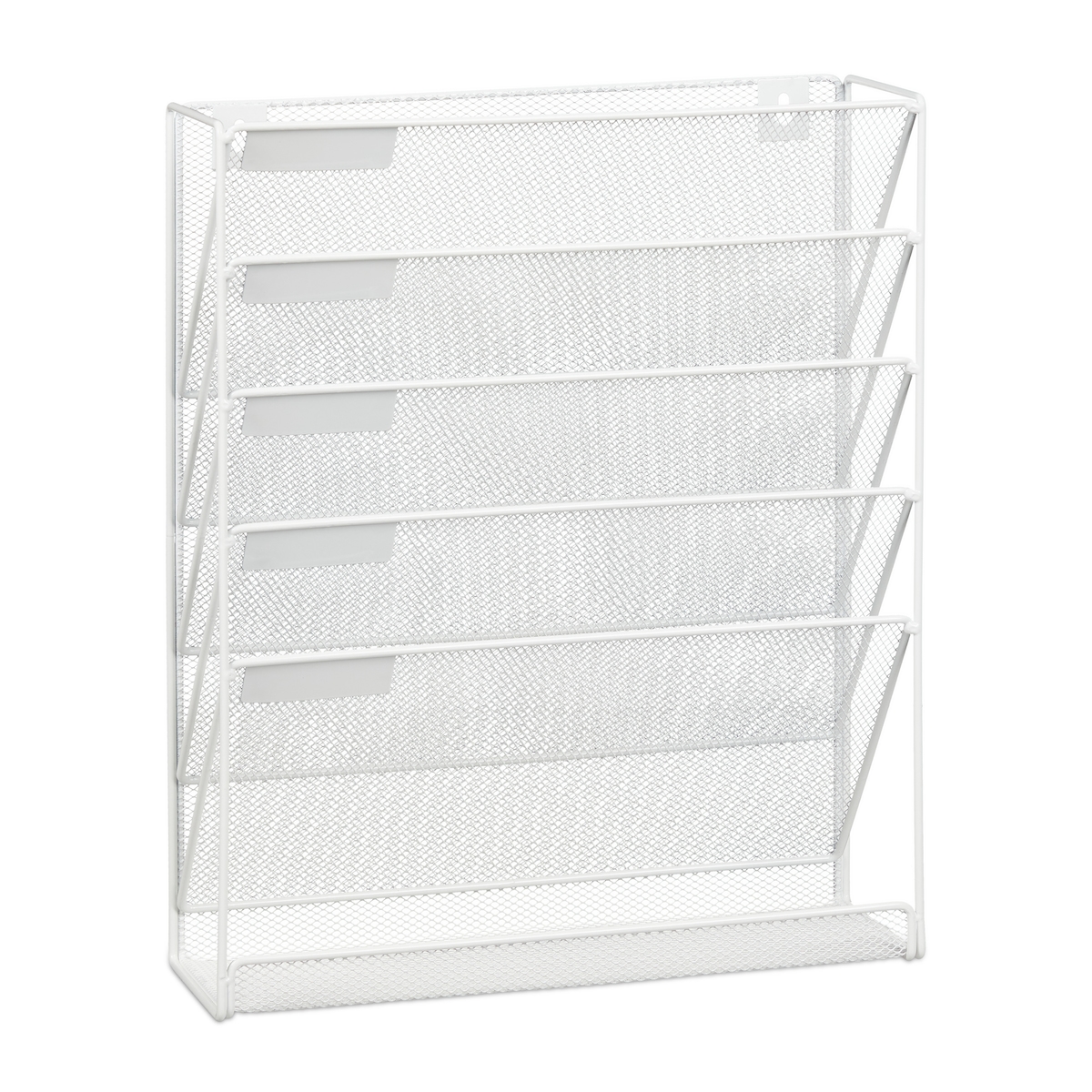 Relaxdays Zeitschriftenhalter Wand, A4-Querformat, 5 Fächer, Metall, Dokumentenablage HxBxT 40,5 x 32,5 x 10,5 cm, weiß