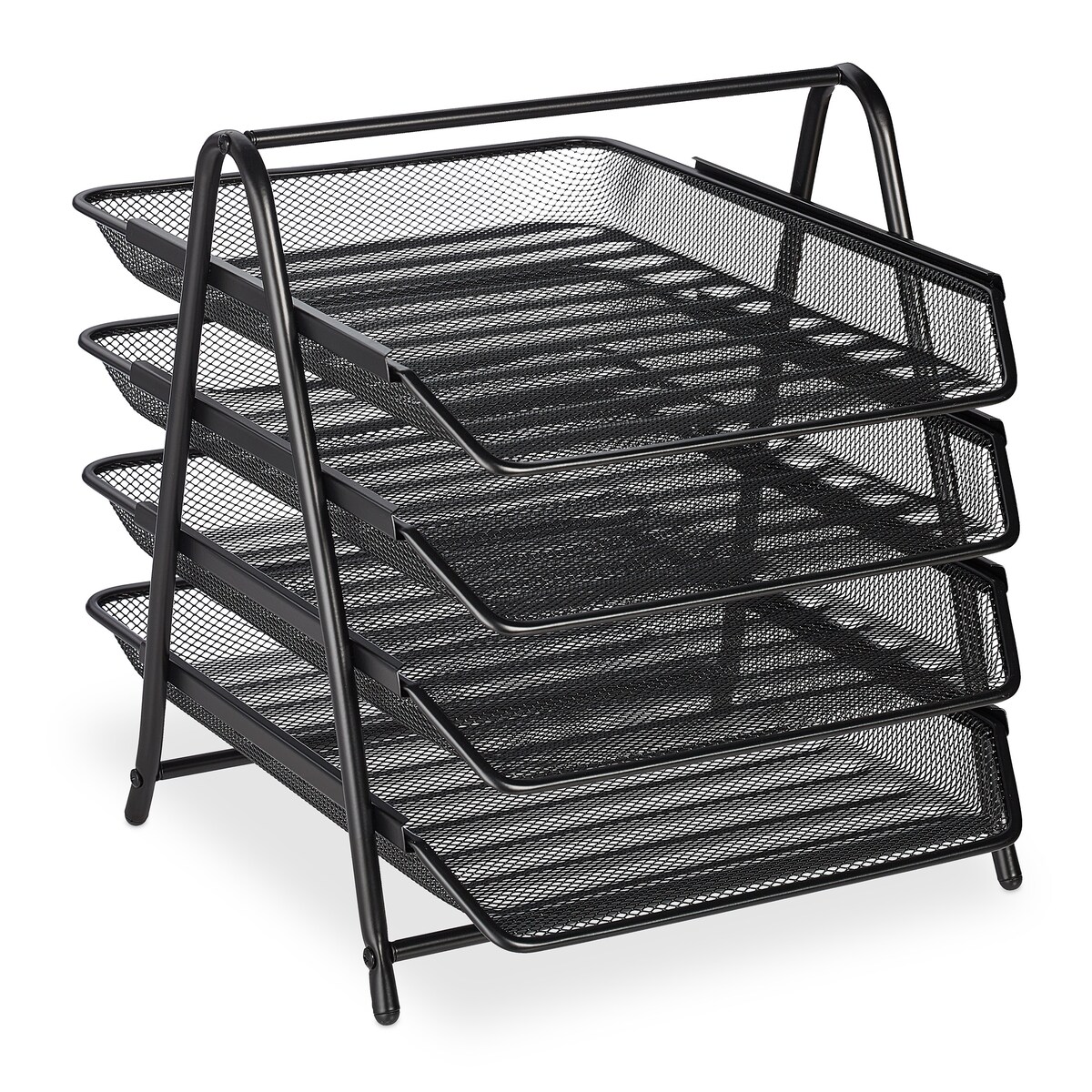 A4 Briefablage aus Metall,4-stöckige stapelbare Dokumentenablage, Mesh Papierablage mit Griff, kompakt, 32,8×24,7×27,6 cm, Schwarz