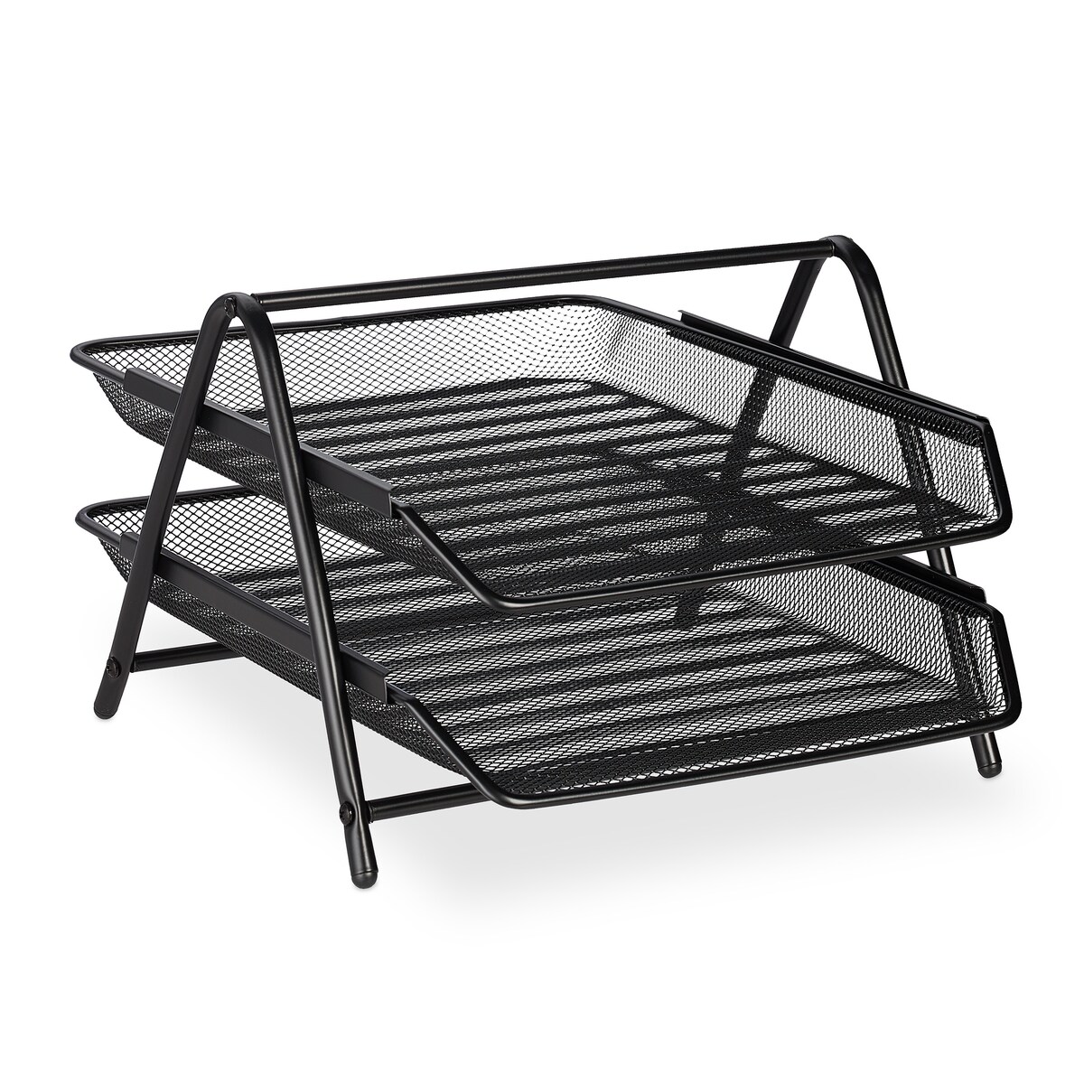 Relaxdays Dokumentenablage, 2 Fächer, Büroablage für A4, HxBxT: 20,5 x 30 x 35,5 cm, Mesh-Metall, Briefablage, schwarz