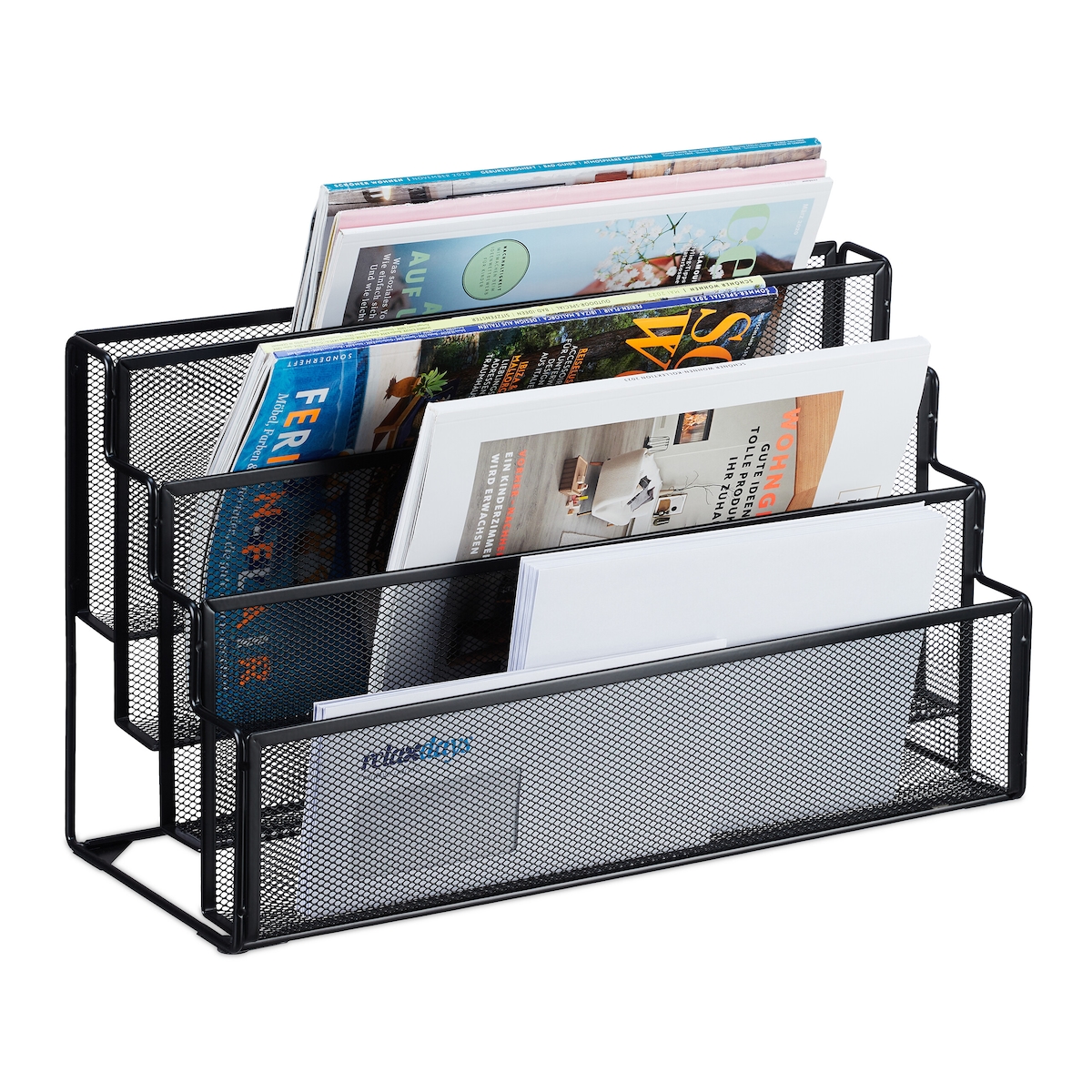 Relaxdays Zeitschriftenhalter Metall, 4 Fächer, Dokumentenablage Büro, HBT: 26x45x18 cm, Magazinhalter, Briefe, schwarz
