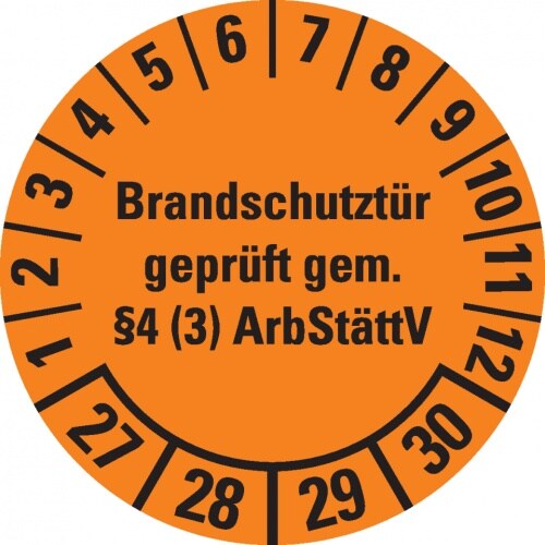 Dreifke Prüfplakette Brandschutztür 27-30, orange, Dokumentenfolie, Ø 30mm, 18 St/Bogen