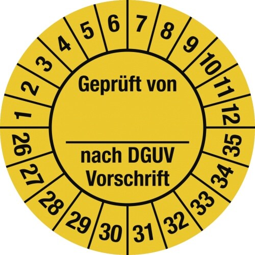 König Werbeanlagen Dreifke Jahresprüfplaketten, DGUV Vorschrift geprüft, - 35 mm Dokumentenfolie selbstklebend