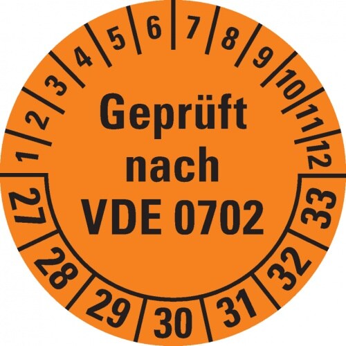 Dreifke Prüfplakette geprüft n. VDE 0702,27-33,orange,Dokumentenfolie,Ø30mm,108/Heft