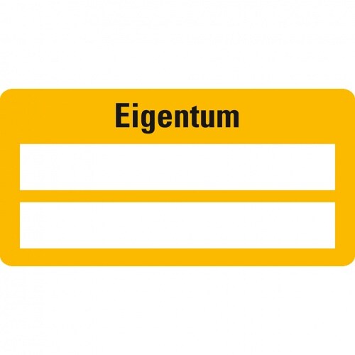 Aufkleber I Inventaretikett Eigentum, gelb, Dokumentenfolie, selbstklebend, 60x30mm, 9/Bogen