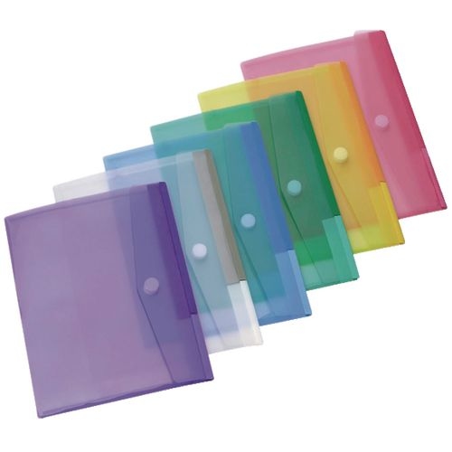 Dokumententaschen Sammelmappen Sichttaschen A5 quer transparent farbig sortiert- Dokumentenmappe mit Klappe und Klettverschluss - 10 Stück