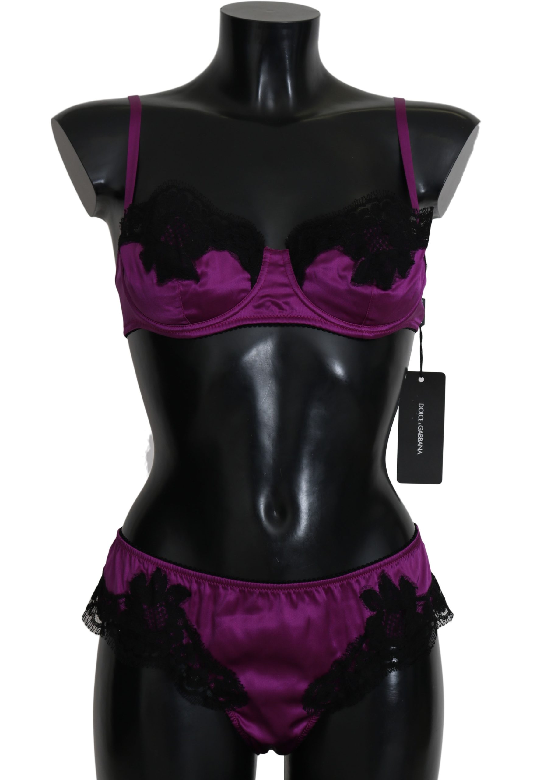 Dolce & Gabbana Lila Seidenblumen-Spitzen-Stretch-Unterwäsche