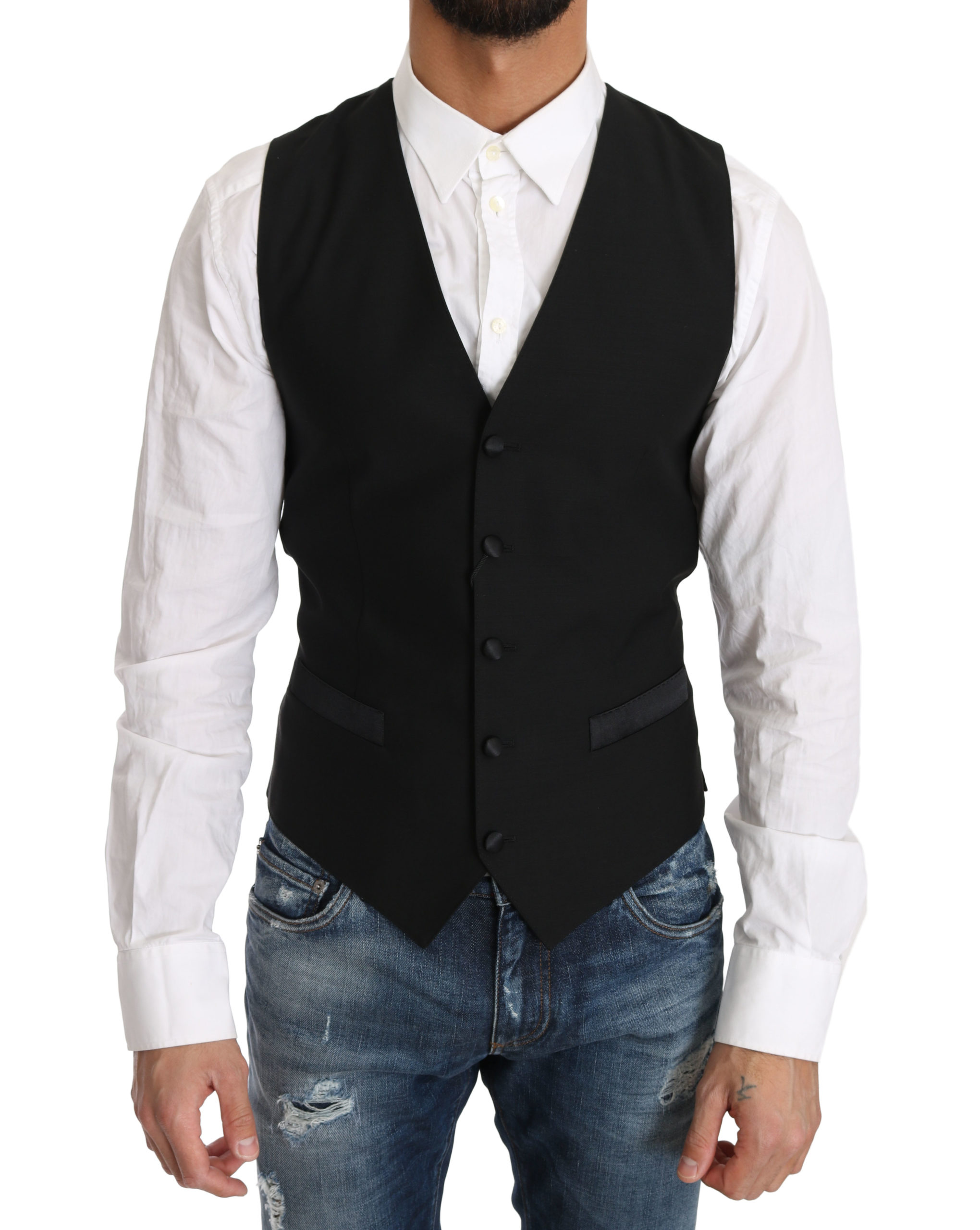 Dolce & Gabbana - Gilet en laine et soie noir solide pour homme