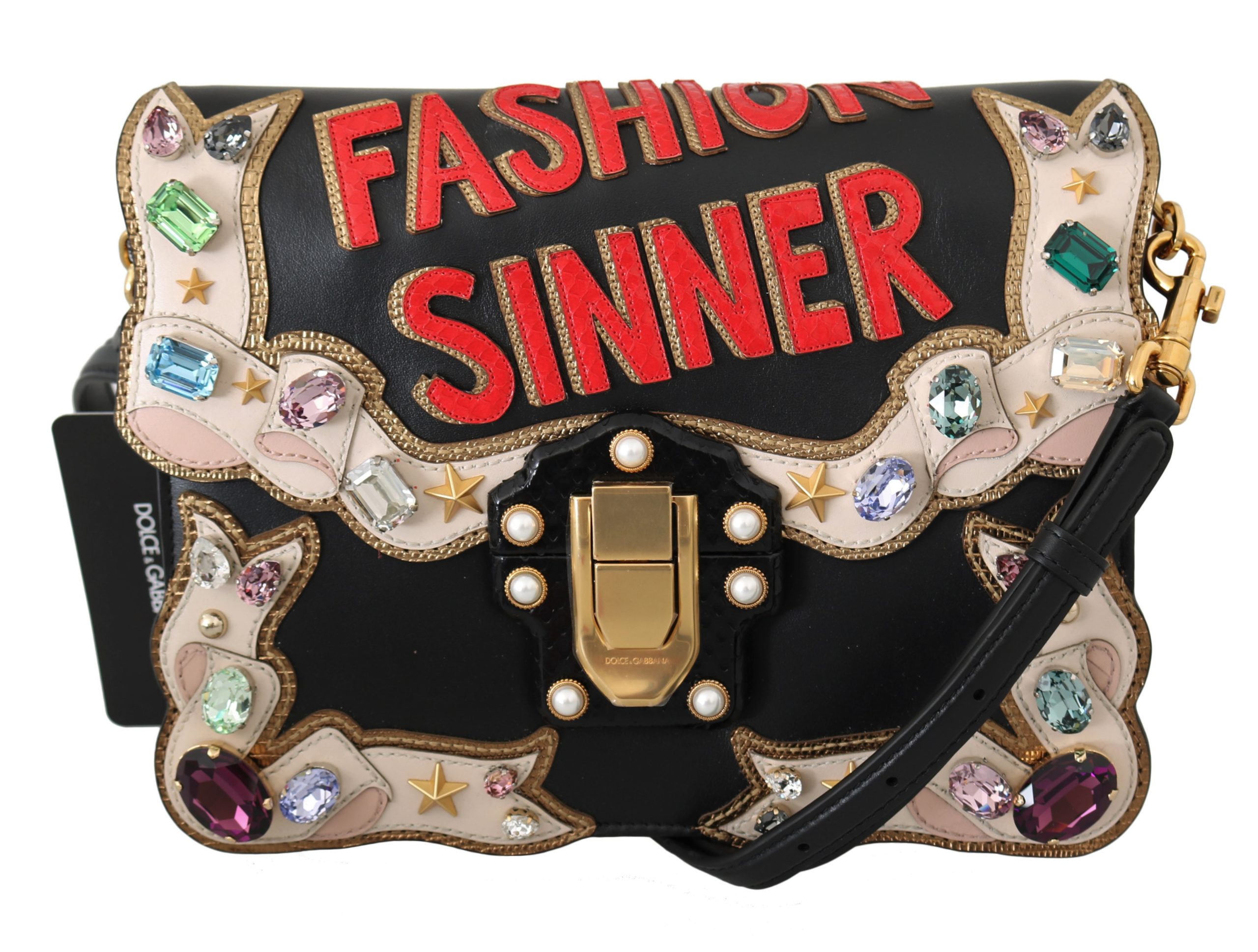 Dolce & Gabbana Porte-monnaie Borse LUCIA en cuir noir et cristal pour femme