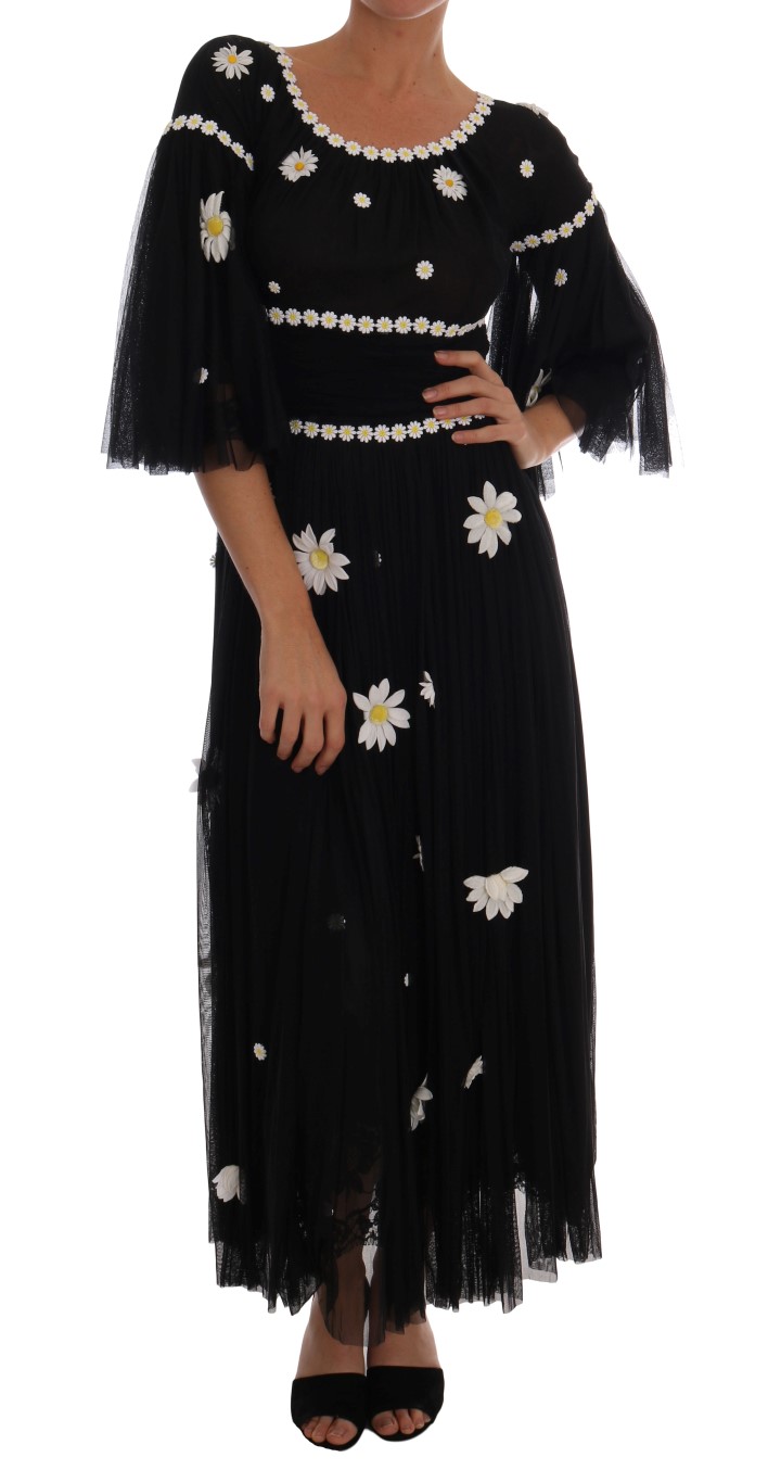 Dolce & Gabbana - Robe en soie noire brodà e de marguerites pour femme