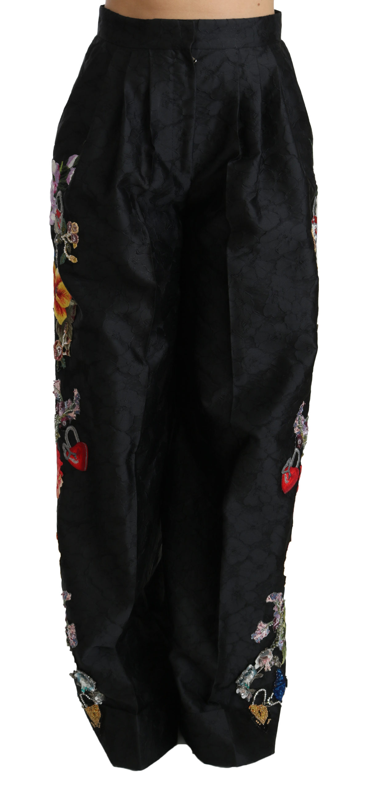 Dolce & Gabbana Pantalon en brocart noir à fleurs pailletà es pour femme