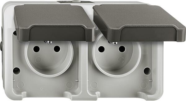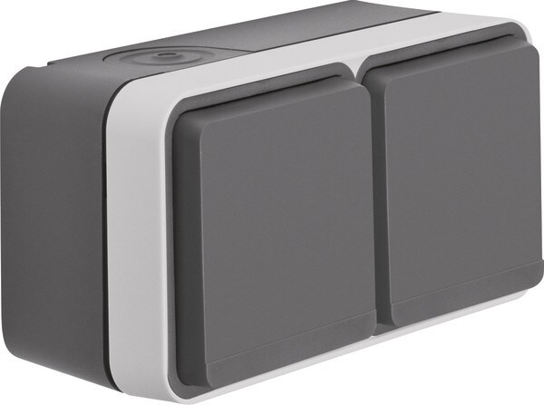 Peranova Feuchtraum-Doppelsteckdose Pera, hell-/dunkelgrau