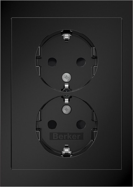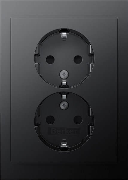 Berker Doppelsteckdose Integro Pure schwarz | inkl. Sekundärleitung, Kunststoff schwarz matt