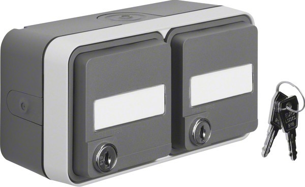 EMZ Peranova 102437 Feuchtraum-Schalterprogramm, Doppelsteckdose Pera, Hellgrau, Dunkelgrau(102437)