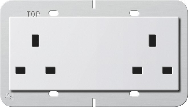 SCHUKO-Doppelsteckdose 16 A 250 V~ mit angeformtem Abdeckrahmen für Kompakt-Einbaudosen Gira 078203