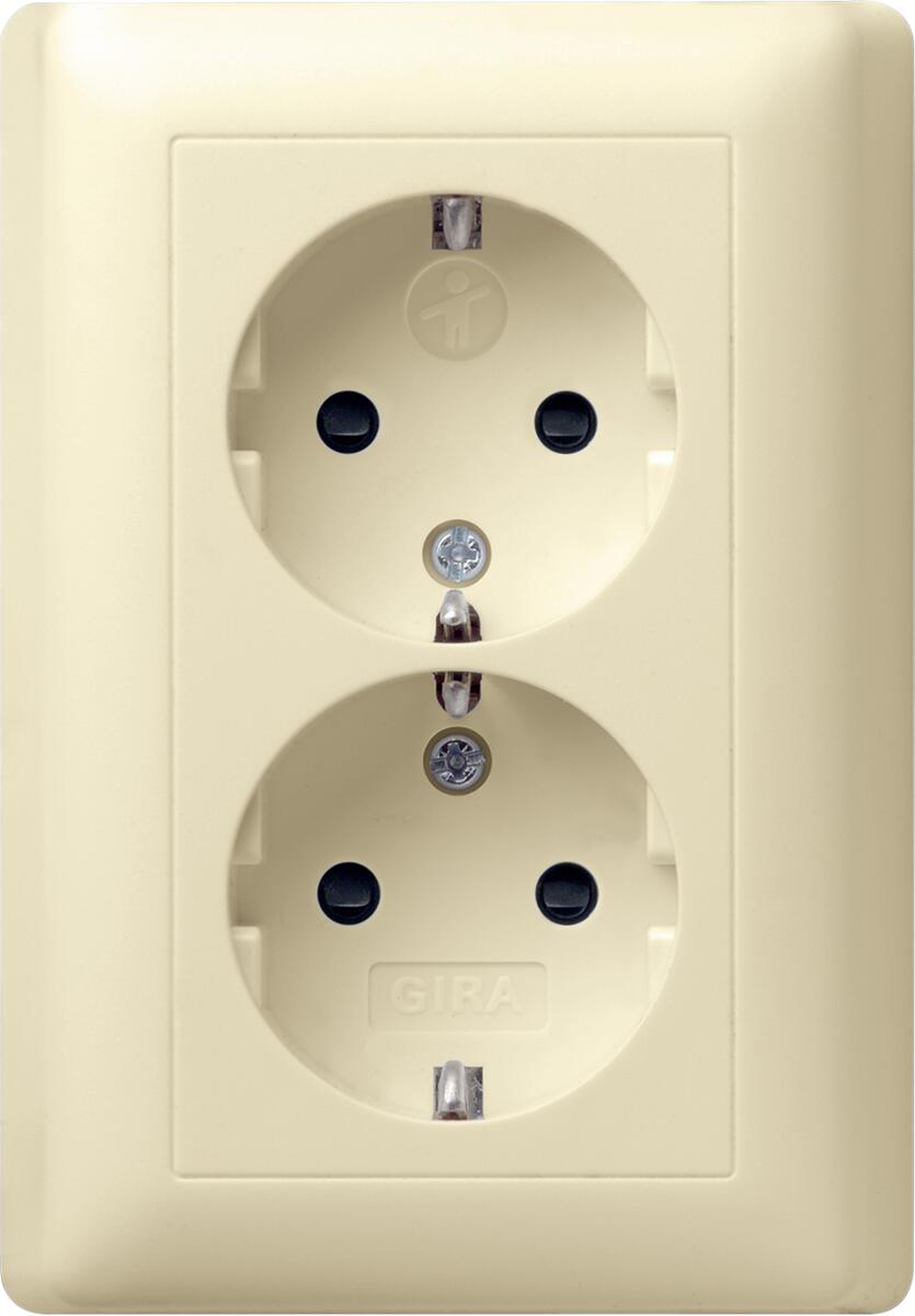 Gira 273128 SCHUKO-Doppelsteckdose 16 A 250 V~ mit integriertem erhöhten Berührungsschutz (Shutter) und Symbol für Unterputz-Gerätedose 1fach, System