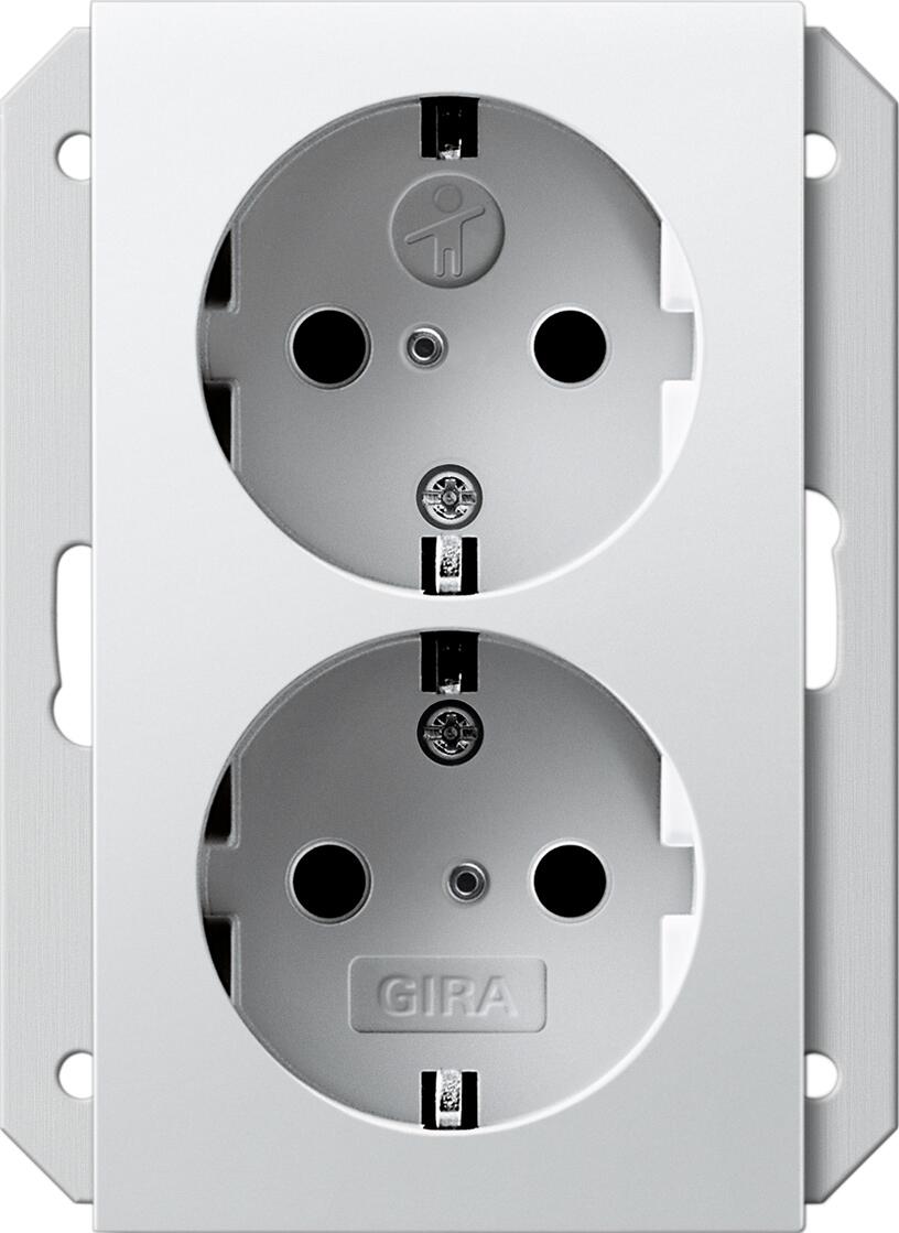Gira 273526 SCHUKO-Doppelsteckdose 16 A 250 V~ mit integriertem erhöhten Berührungsschutz (Shutter) und Symbol für Unterputz-Gerätedose 1,5fach, Syste