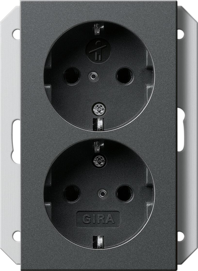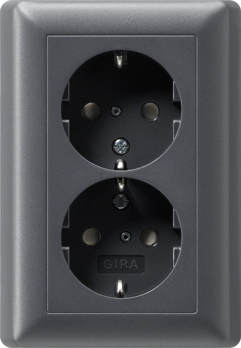 Gira 078328 SCHUKO-Doppelsteckdose 16 A 250 V~ mit integriertem erhöhten Berührungsschutz (Shutter) und Vollplatte, System 55, Anthrazit