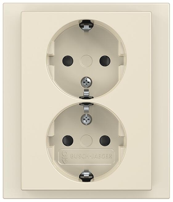 Busch-Jaeger 202 EUJB-82 Schuko Doppelsteckdose, Safety+, Elfenbeinweiß (2TKA00003885)