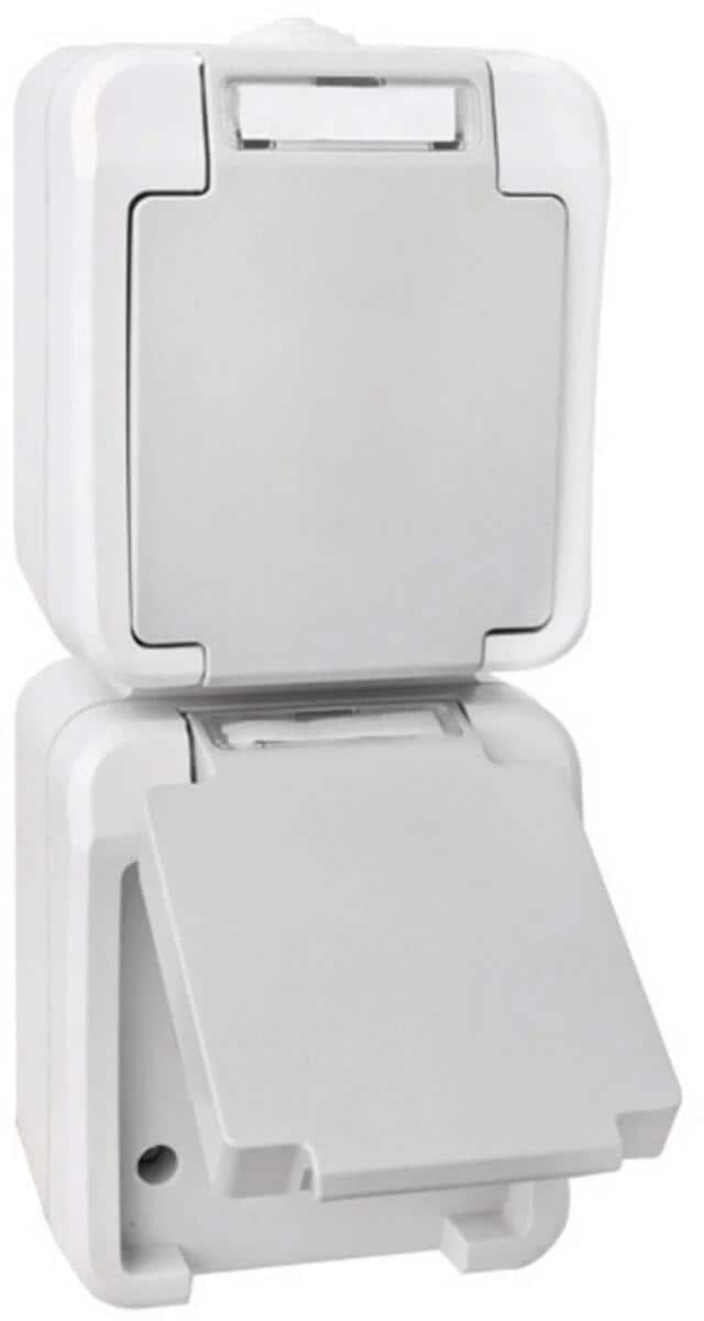 ELEKTRO-PLAST | Doppelsteckdose 0322-01 - Weiß - IP44 - Spritzwassergeschützt - Mit Klappe