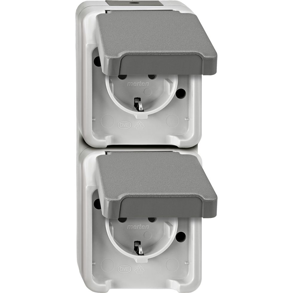 Merten Doppelsteckdose mit Klappdeckel Aquastar, Aufputz, MEG2329-8029
