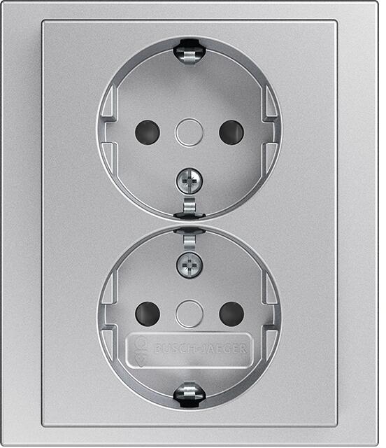 Busch-Jaeger 202 EUJB-83 Schuko Doppelsteckdosen, Safety+, Alusilber (2TKA00003887)