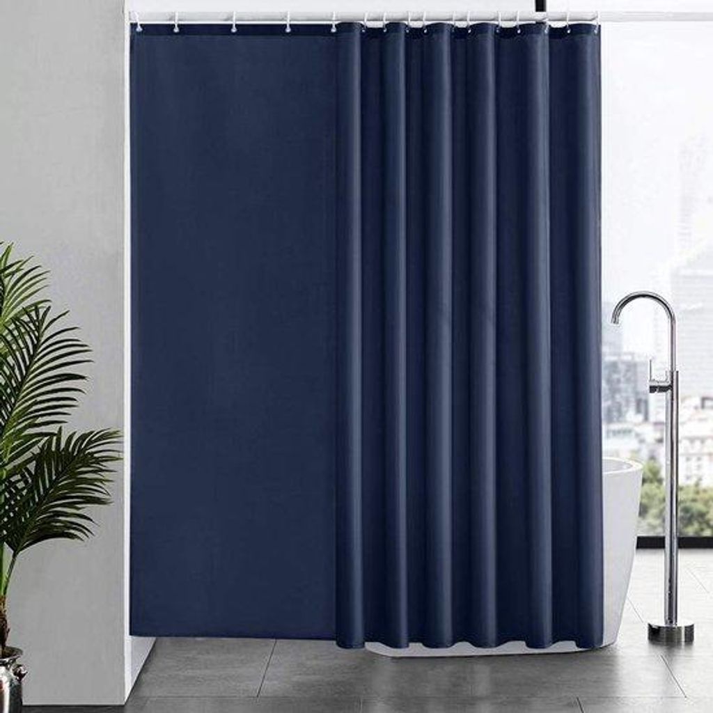 Langes Douchegordijn Donkerblauw Antibakteriell und Waschbar mit 12 Ringen