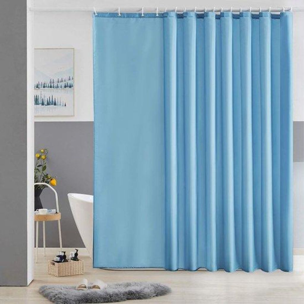 Schimmelbestendiges Polyester-Douchegordijn, Wasserfest, leicht zu reinigendes Textil für Badewanne oder Badzimmer, 270x180cm, Lichtblau.