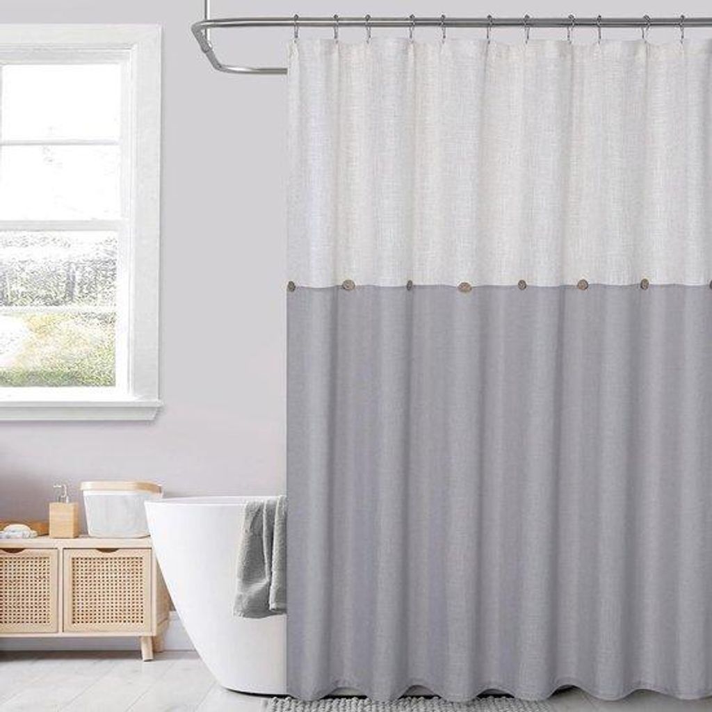 Wasbares Schimmelbeständiges Douchegordijn aus Textil mit dekorativen Knöpfen, 183 x 198 cm, Grau