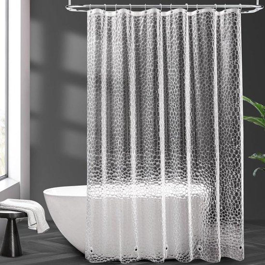 Transparante EVA-douchegordijn, 180 x 200 cm, geometrisch 3D-patroon, waterdicht, schimmelwerend, 12 haken