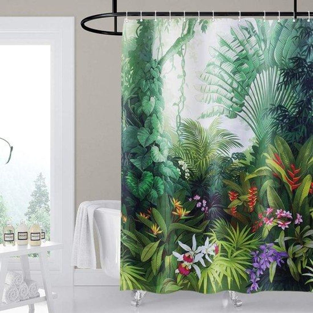 Polyester-Douchegordijn, antibakteriell, wasserdicht, schimmelabwehrend, 180 x 180 cm, Regenwald, Badkamergordinen mit 12 Ringen