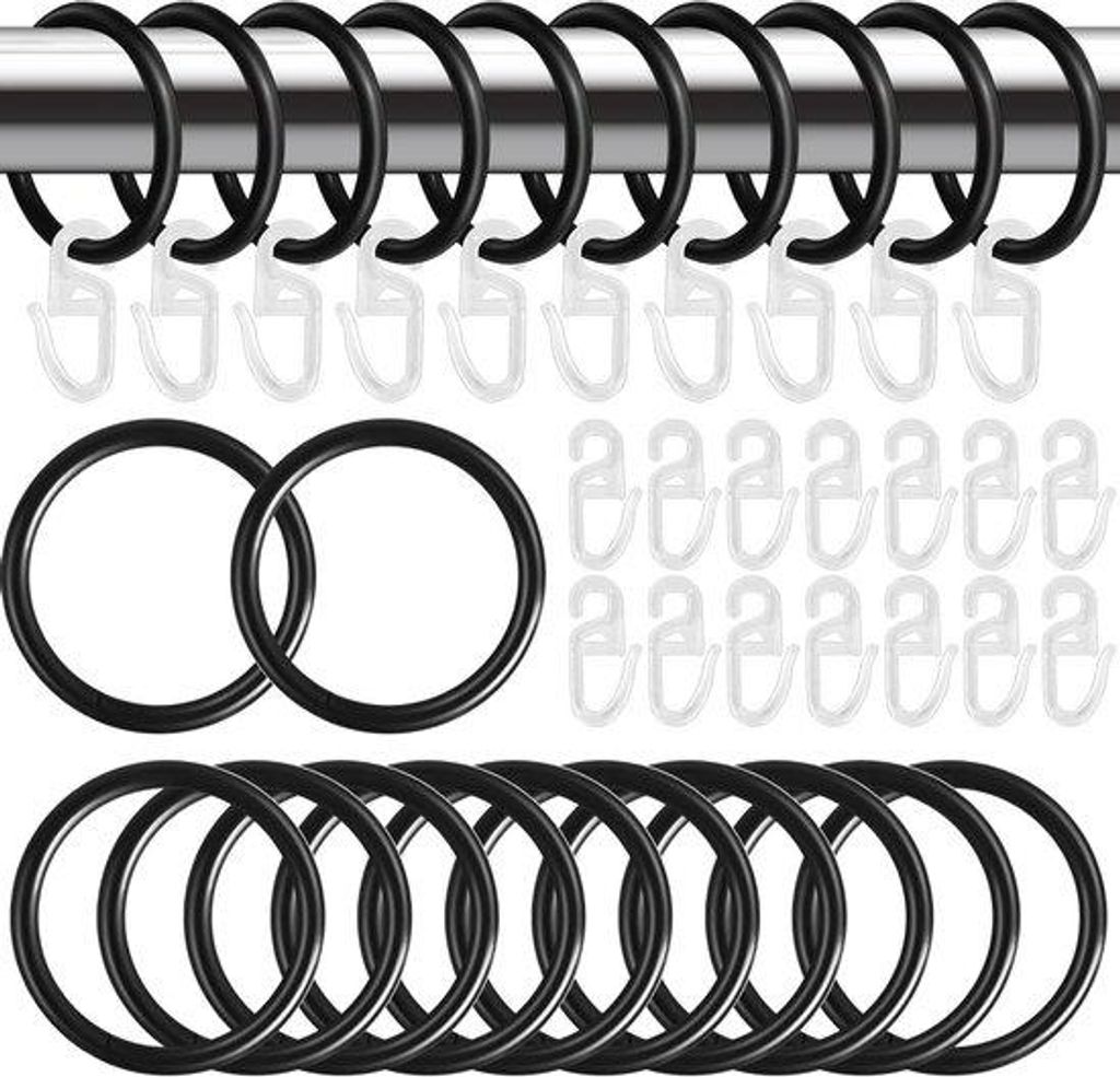 Transparante Douchegordijn Set - 80 Haken - Zwarte Plastic Gordijnhaken - 30 Mm - 40 Stuks