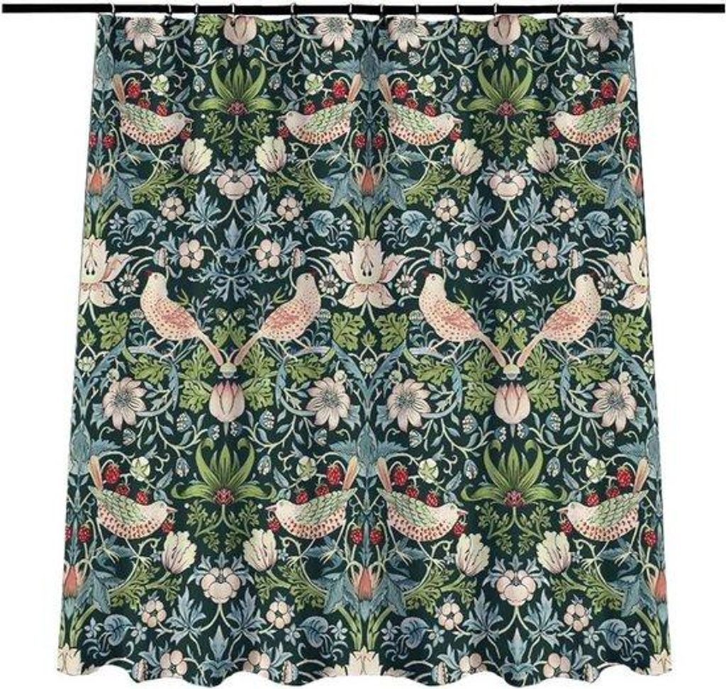 Douchegordijn - Aardbeiendief - Waterafstotend en anti-schimmel - Polyester - Decoratief - Art Deco - 180 x 180 cm - Inclusief 12 gordijnhaken - Ma...