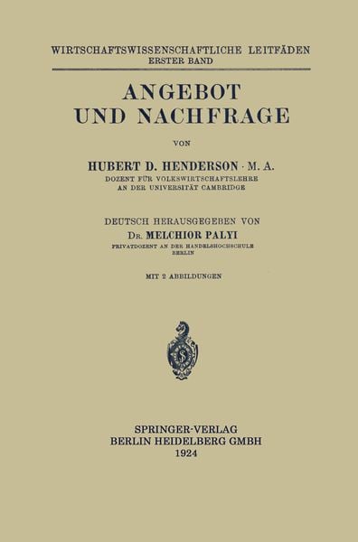 Angebot und Nachfrage, Taschenbuch von Hubert Douglas Henderson , Melchior Palyi, Springer Berlin, 9783662344095