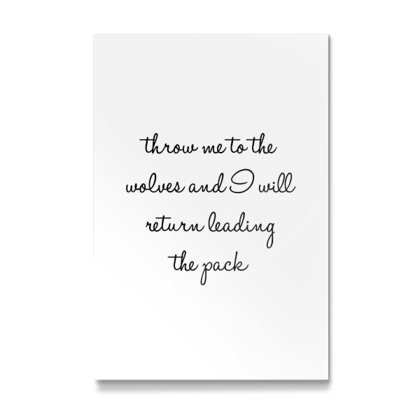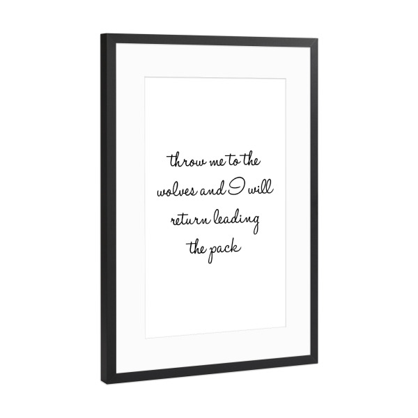 Poster mit Rahmen Schwarz (Metallic) "Throw me to the wolves" artboxONE - Typografie,Schwarzweiß - Strong women,Wolves,Pack,Starke frauen,Frauenpower