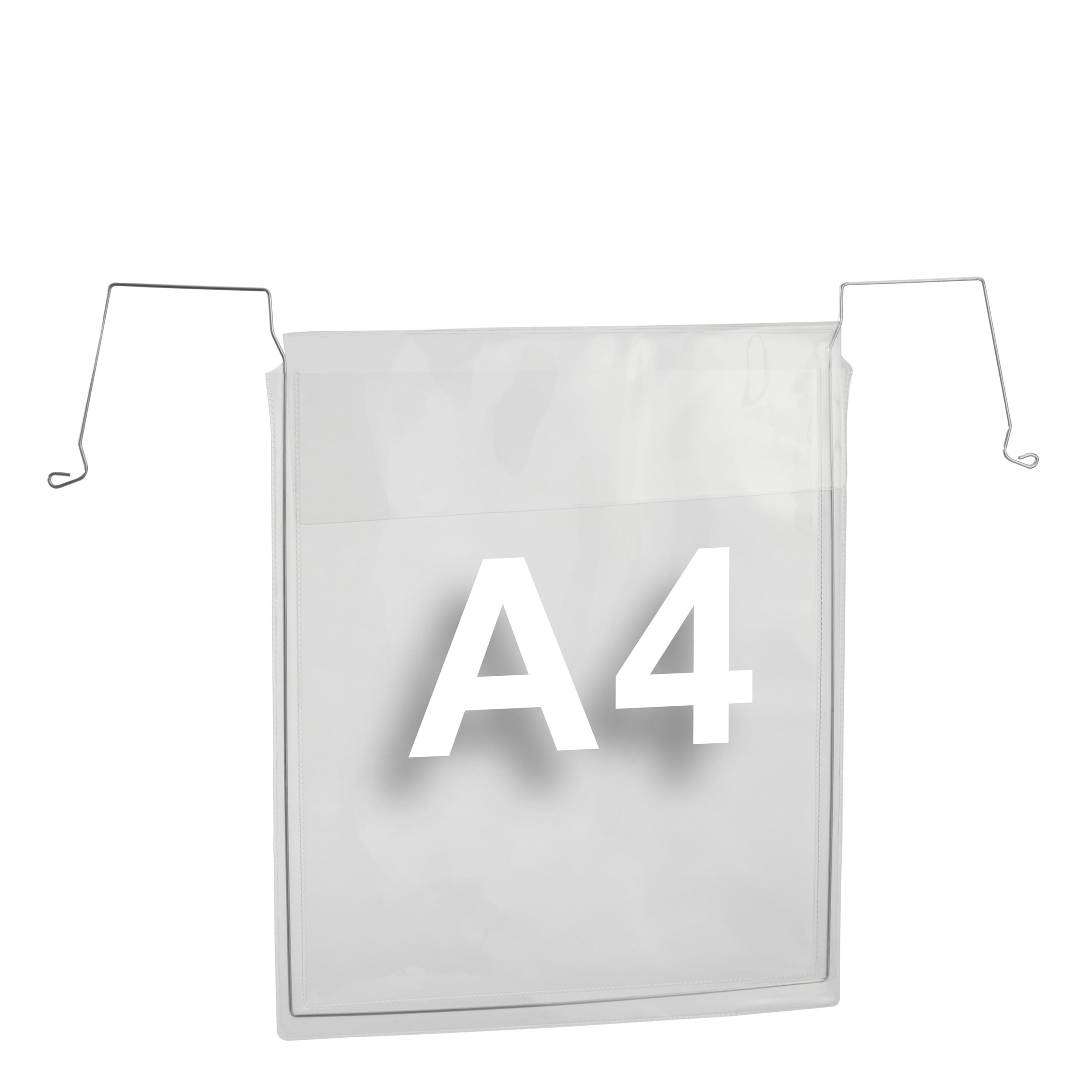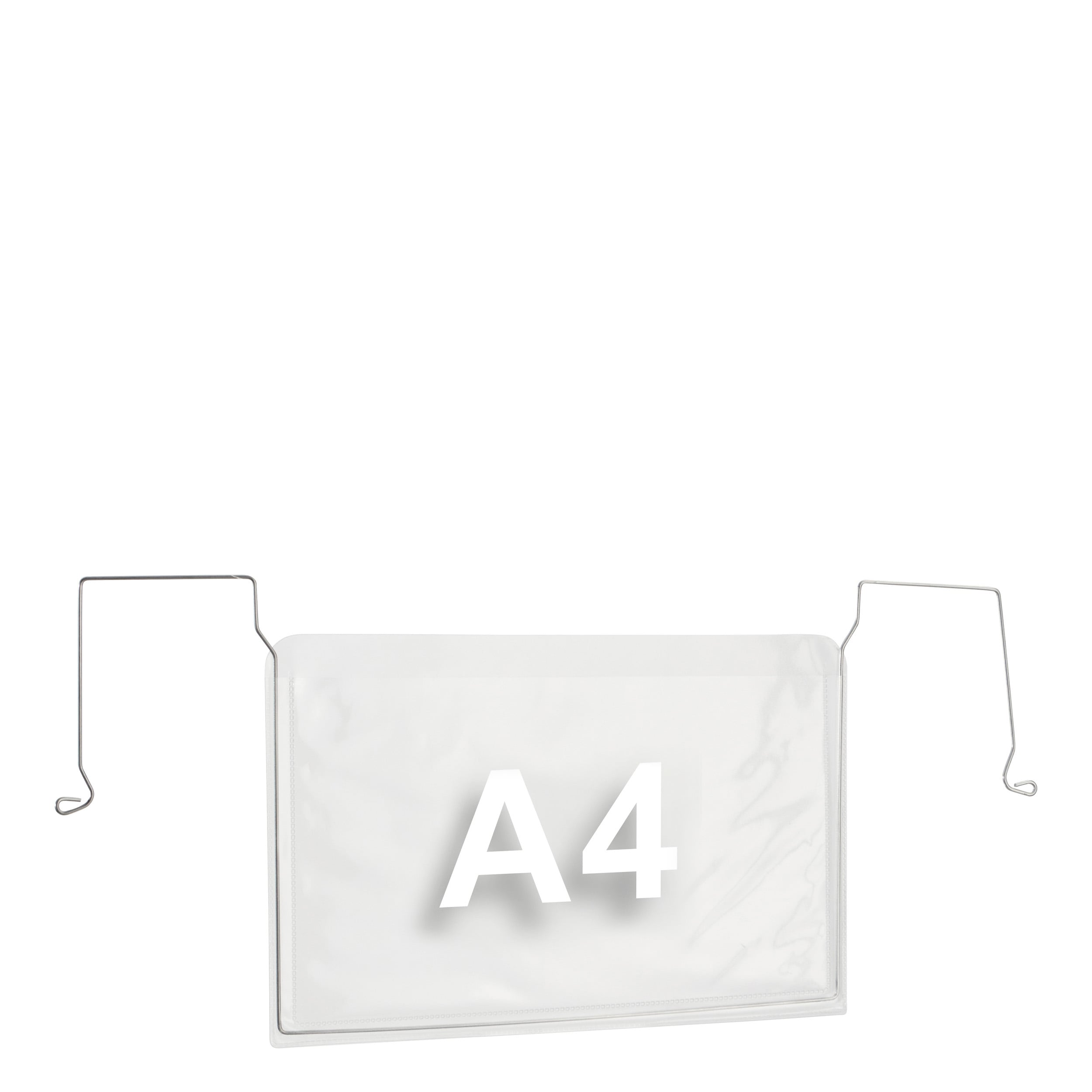 100 Drahtbügeltaschen für DIN A4, Breitseite offen, Weich-PVC, transparent