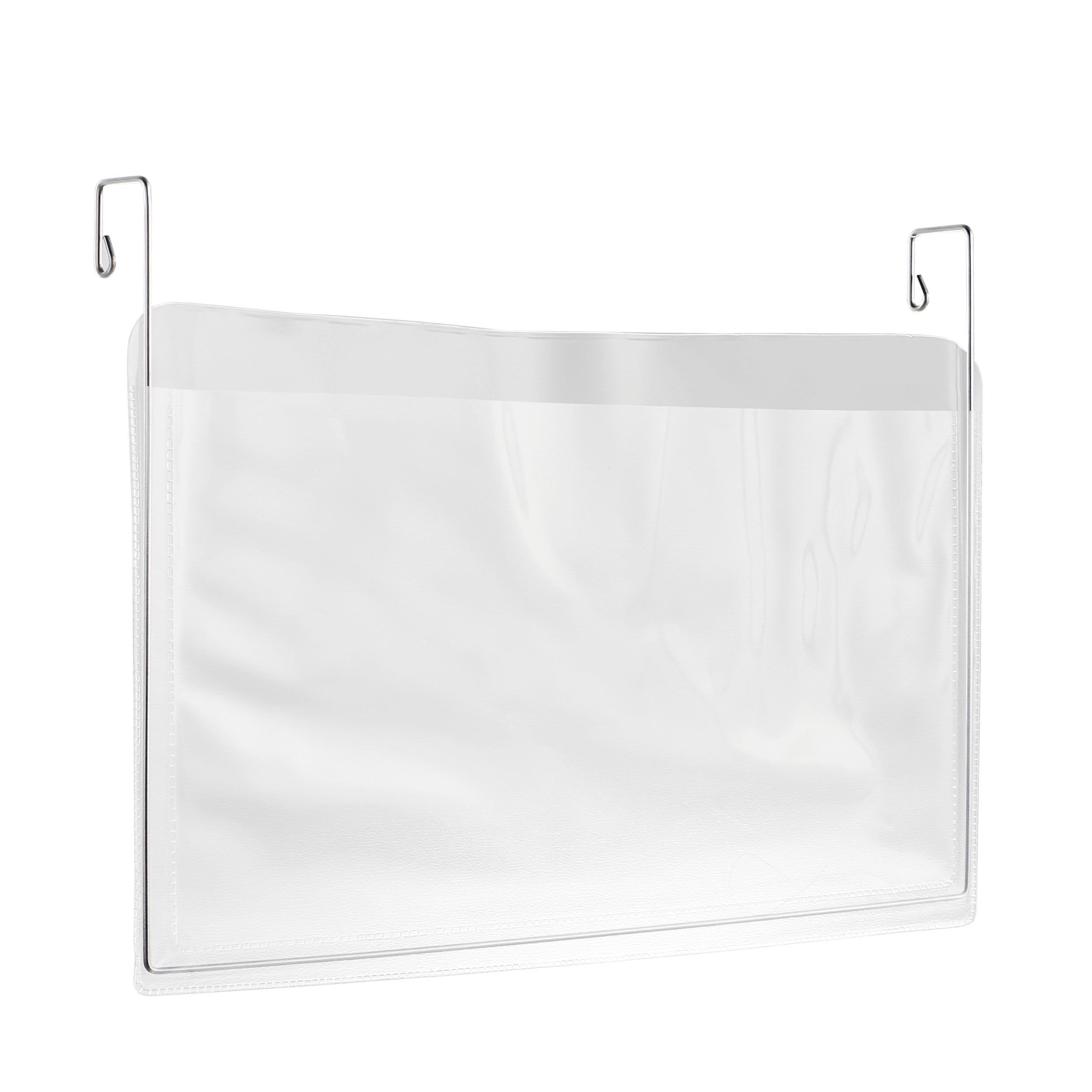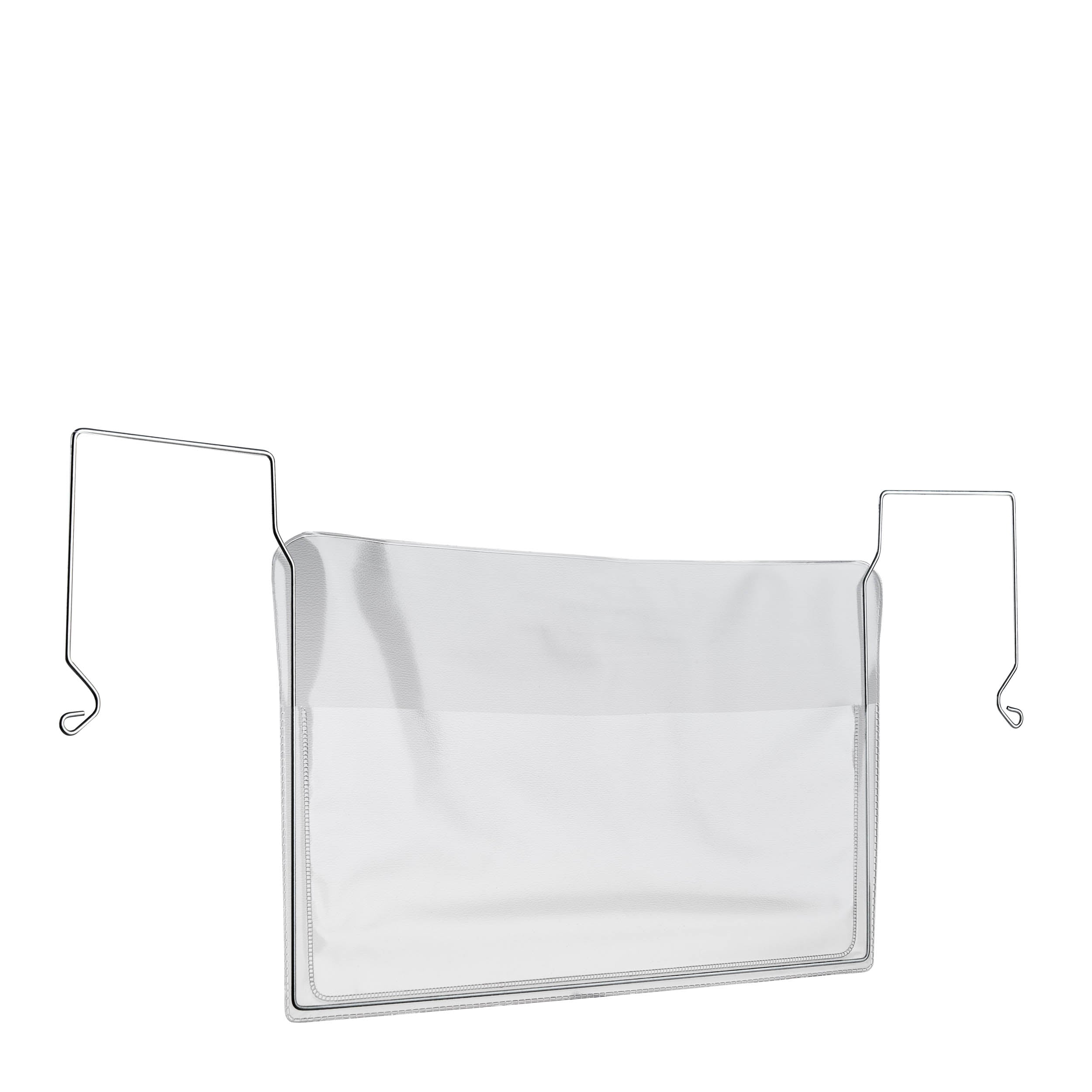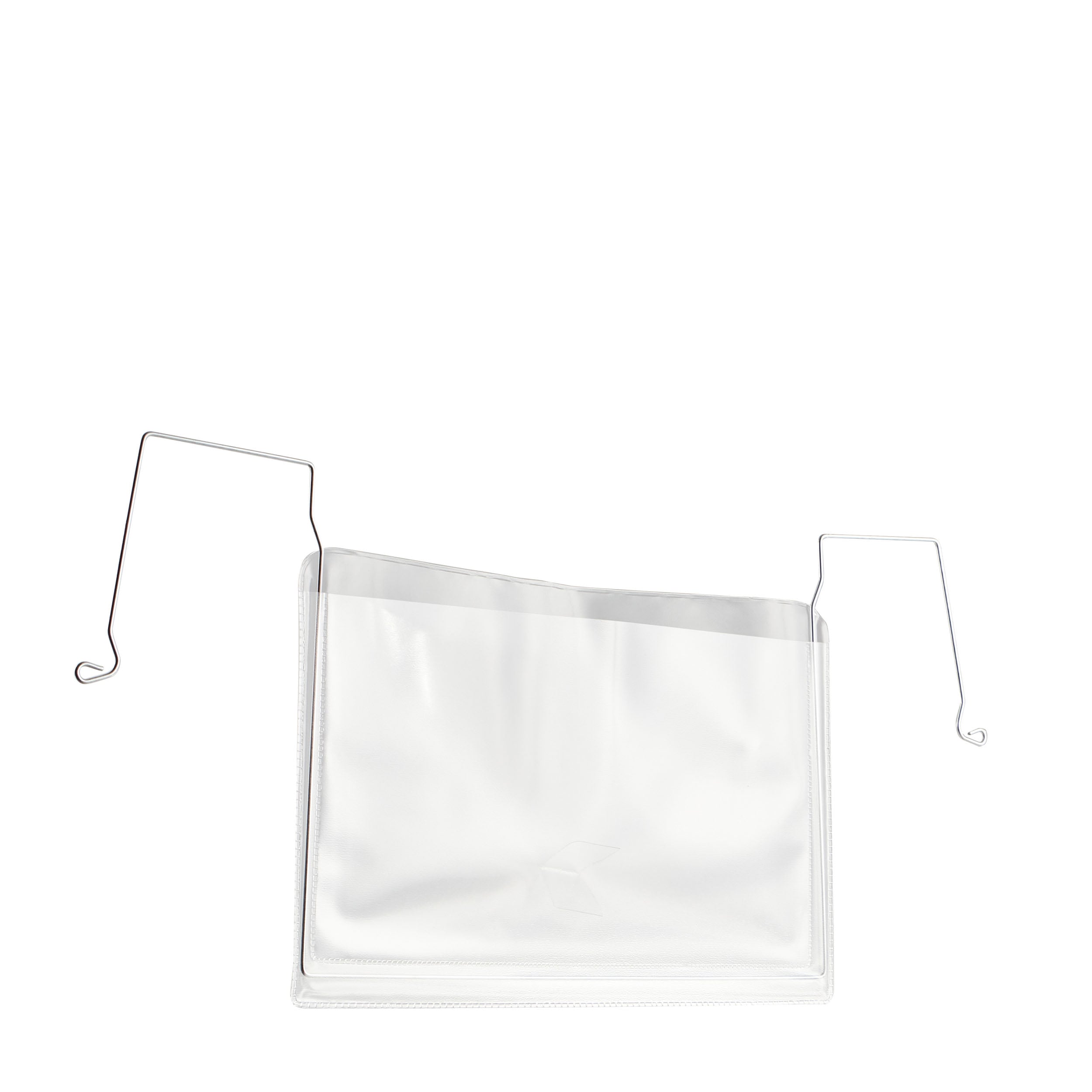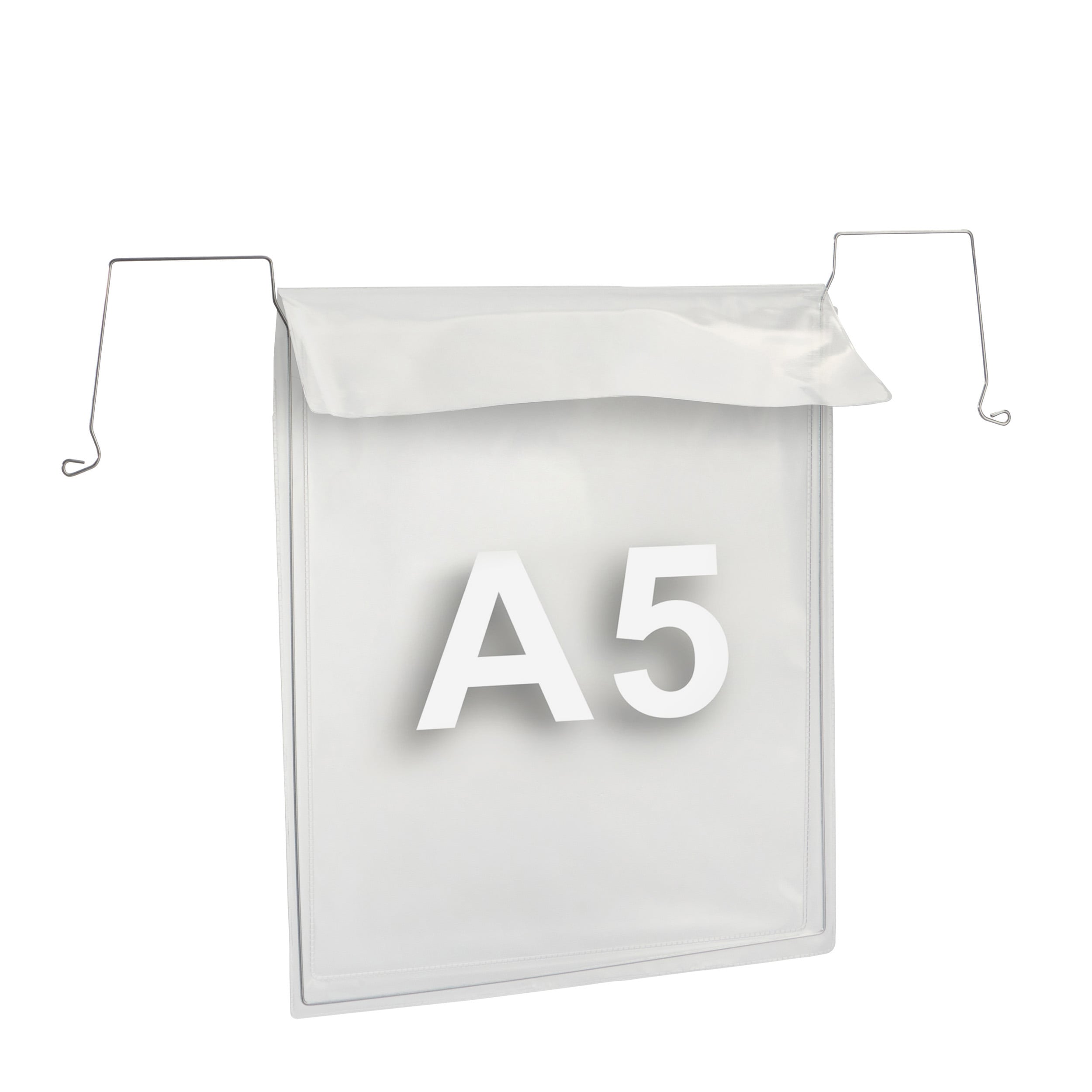 100 Drahtbügeltaschen für DIN A5, Breitseite offen, kurzer Draht nach hinten, Weich-PVC, transparent