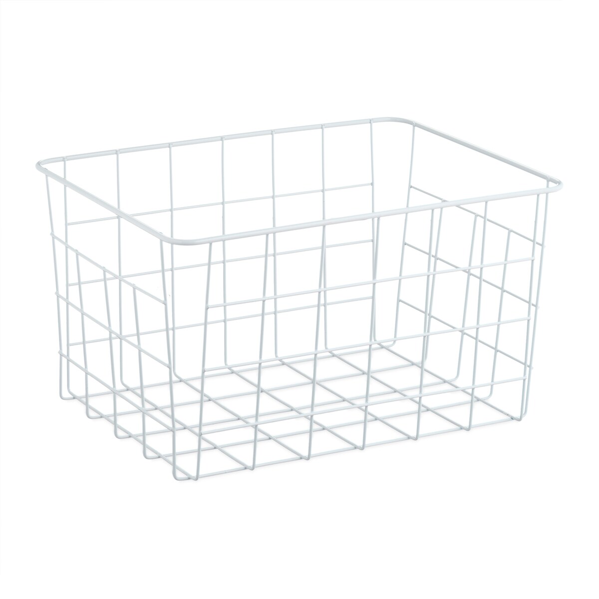 4 Stück Drahtkorb Metallkorb Weiß, 28 x 22 x 12 cm, Eisenkorb für Aufbewahrung in Büro, Küche, Badezimmer und Schränken