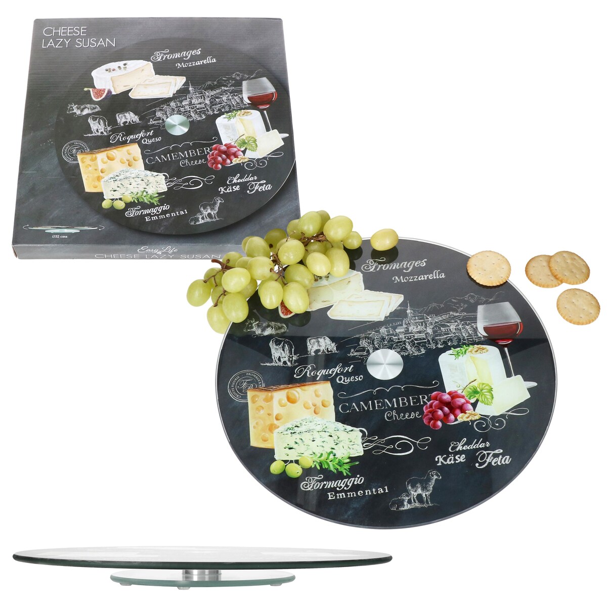 World of Cheese Käseplatte drehbar Ø32cm Glas Wurst Fingerfood Servier-Tablett