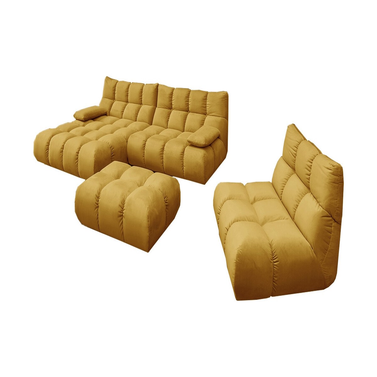 KAWOLA Sitzgruppe VIVIEN Ecksofa links Drehsessel Hockerbank Velvet curry