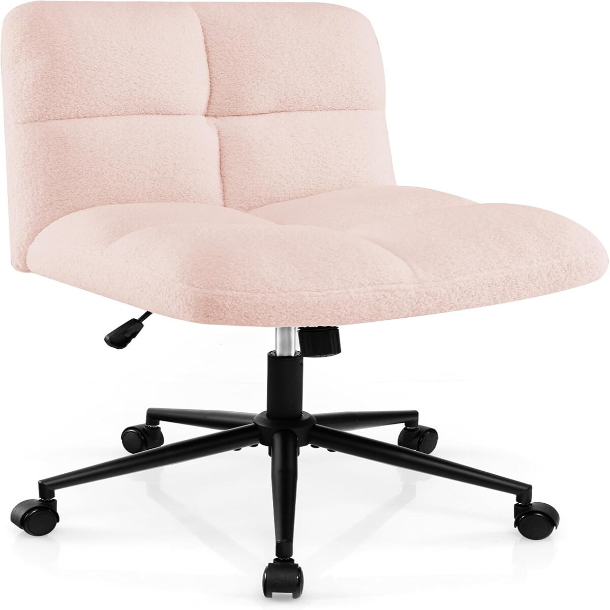 Bürostuhl ohne Armlehnen, höhenverstellbarer Drehstuhl für Schminktisch mit Rollen, Schneidersitz mit breitem Sitzkissen, kleiner Schreibtischst...