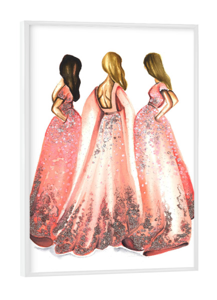 Poster mit weißem Rahmen "Girls in Powder Pink" artboxONE - Fashion - Mode,Mode,Mode illustration,Rosa,Mode kunst,Dress,Kleid