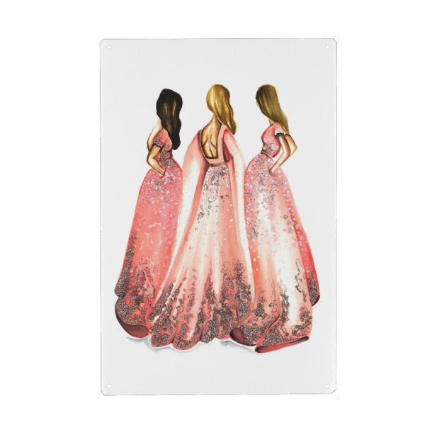 Holzbild "Girls in Powder Pink" artboxONE - Fashion - Mode,Mode,Mode illustration,Rosa,Mode kunst,Dress,Kleid