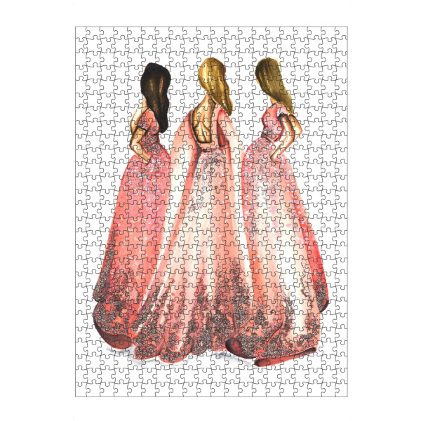 Puzzle Ravensburger "Girls in Powder Pink" artboxONE - Fashion - Mode,Mode,Mode illustration,Rosa,Mode kunst,Dress,Kleid - Bild Mode