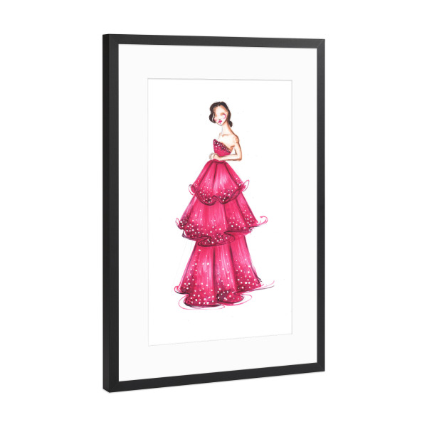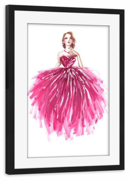 Poster mit schwarzem Rahmen "Girl in Pink Dress" artboxONE - Fashion - Mode,Mode,Mode illustration,Rosa,Madchen,Mädchen,Dress,Kleid