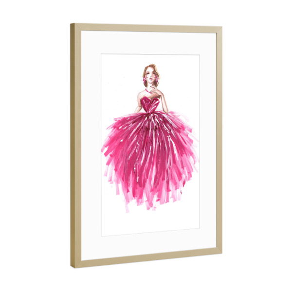 Poster mit Rahmen Gold "Girl in magenta" artboxONE - Fashion - Rosa,Mode,Mode,Modeillustration,Mode kunst,Modemalerei,Mädchen,Madchen,Dress,Kleid