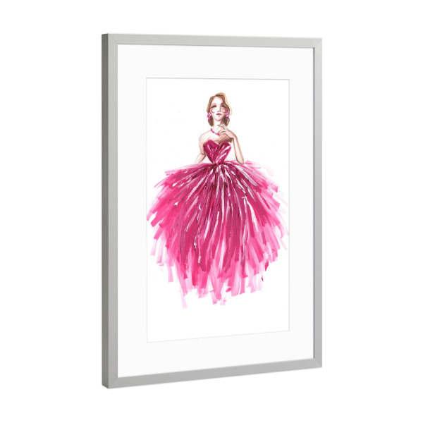Poster mit Rahmen Silber "Girl in Pink Dress" artboxONE - Fashion - Mode,Mode,Mode illustration,Rosa,Madchen,Mädchen,Dress,Kleid