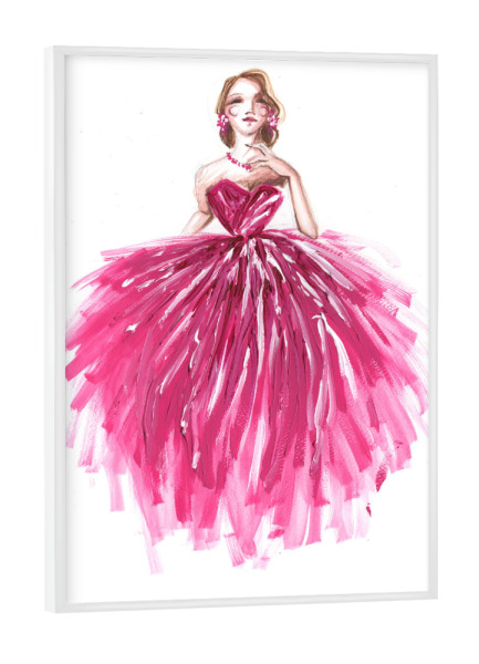 Poster mit weißem Rahmen "Girl in magenta" artboxONE - Fashion - Rosa,Mode,Mode,Modeillustration,Mode kunst,Modemalerei,Mädchen,Madchen,Dress,Kleid