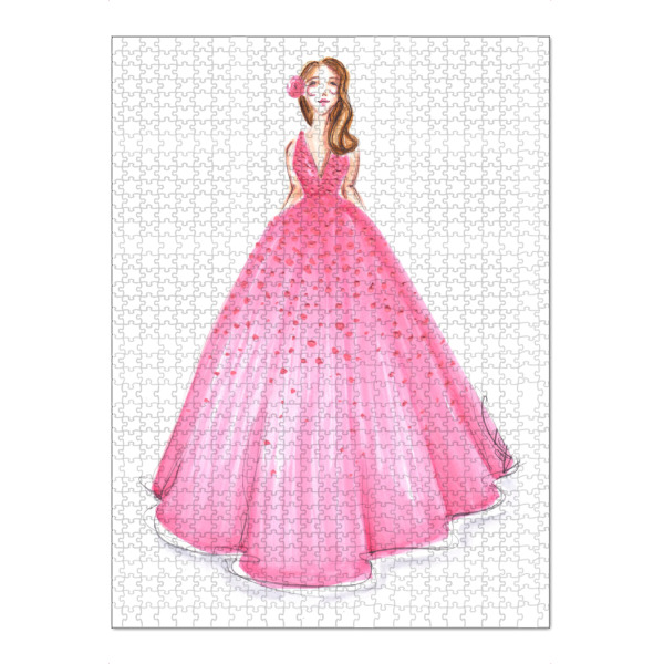 Puzzle Ravensburger "Girl in Pink Dress" artboxONE - Fashion - Mode,Mode,Mode illustration,Rosa,Madchen,Mädchen,Dress,Kleid - Bild Mode